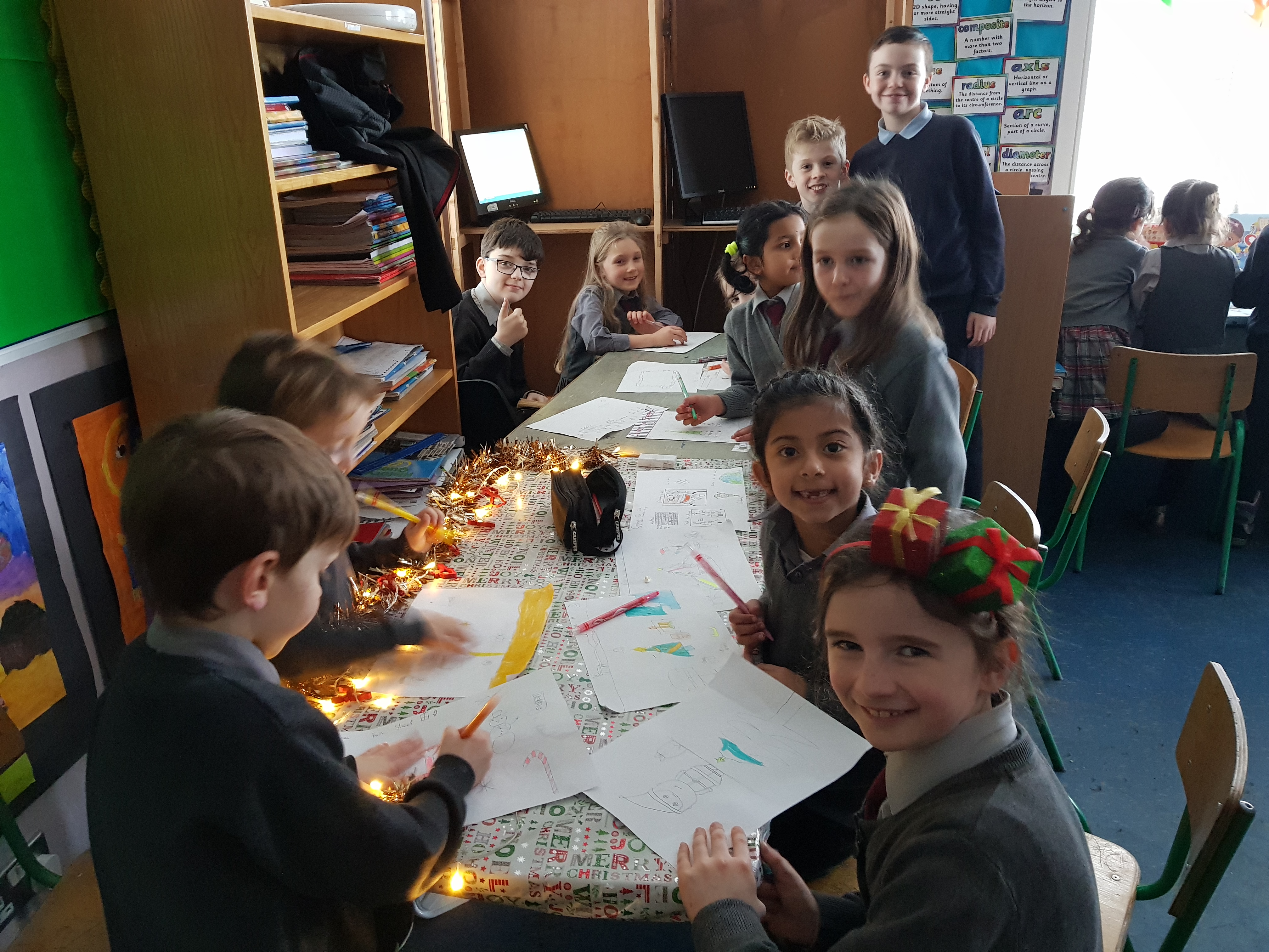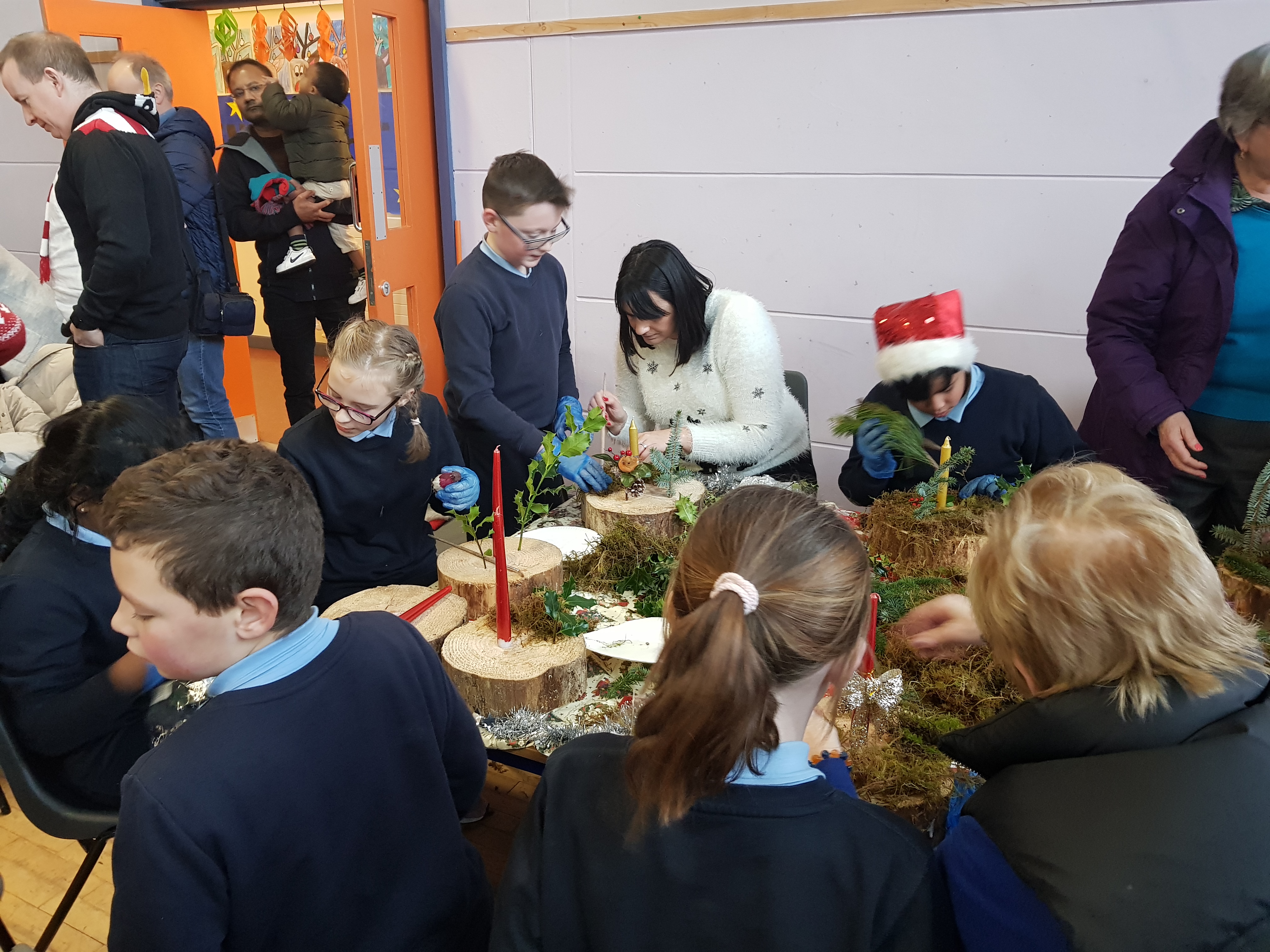 A massive well done to all of the 5th Classes, teachers, helpers, parents & grandparents who were involved in the Christmas Log making. The logs were cut, holes drilled in them for candles, holly & they were then decorated with moss, ribbon and selected decorations chosen by the students. There was such a lovely Christmas atmosphere in the hall. The children ended the day with beautiful Christmas songs!