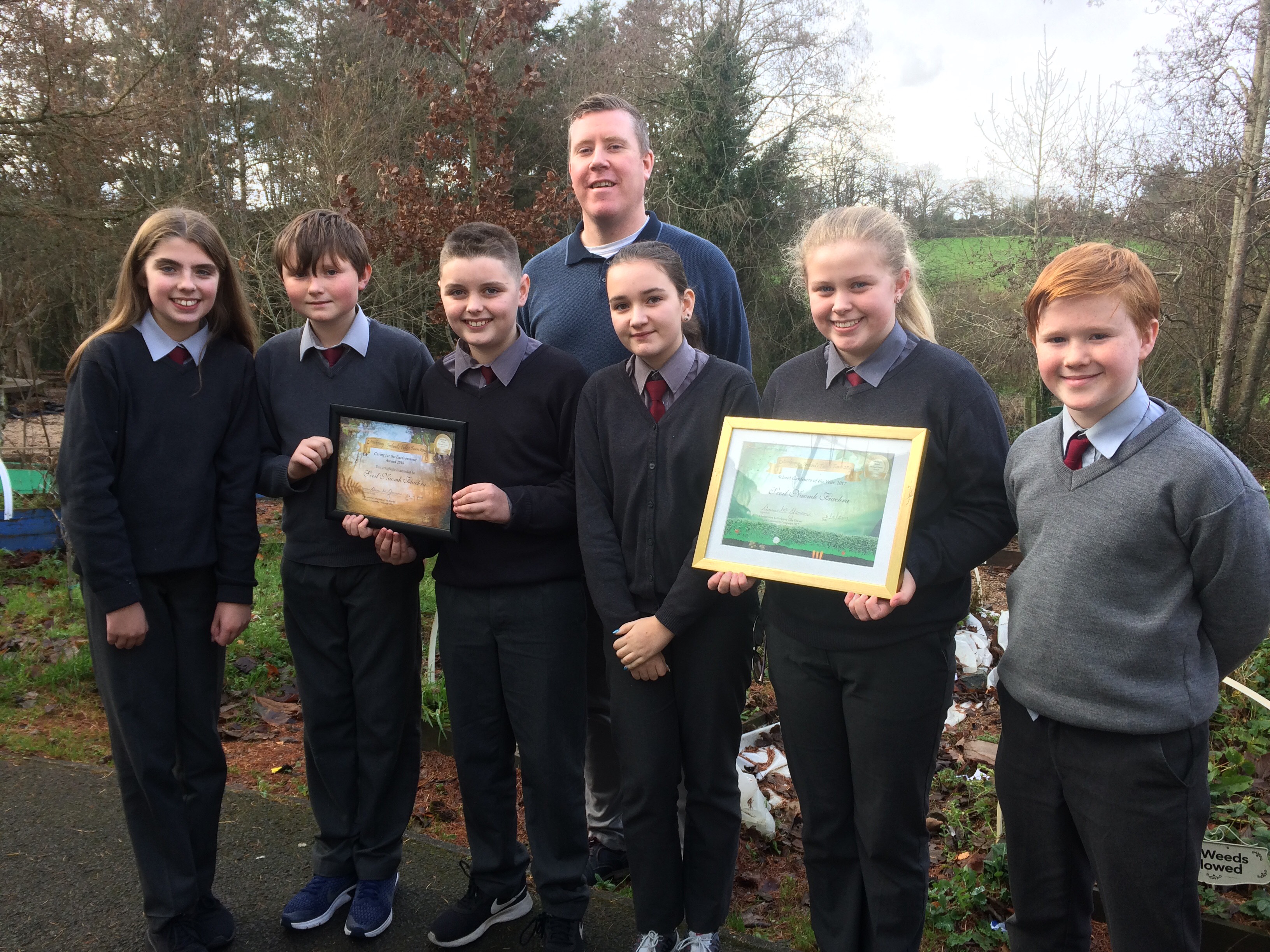 We were delighted to be chosen by Letterkenny Tidy Towns for a Caring for the Environment Award. This award was in recognition of our participation in the Green Schools Programme and developing our school garden. A butterfly garden has been created in our courtyard and we look forward to the appearance of these beautiful creatures next May/June. Mr Gallagher is pictured with some of last year’s 5th class pupils who worked on our vegetable garden behind the school. The strawberries were particularly delicious!