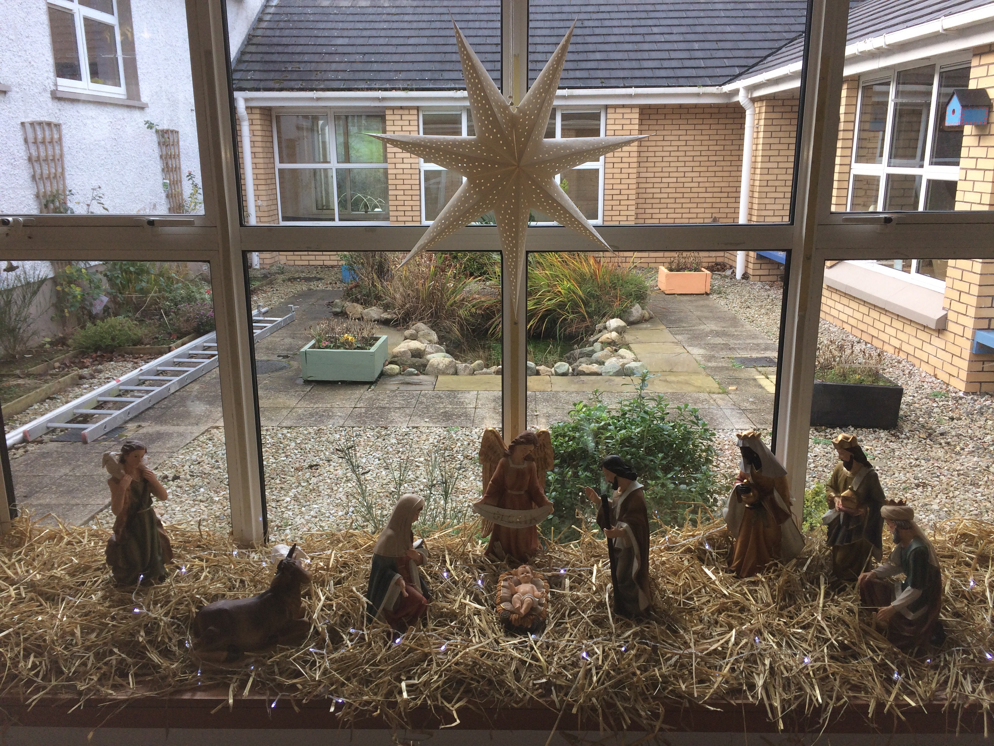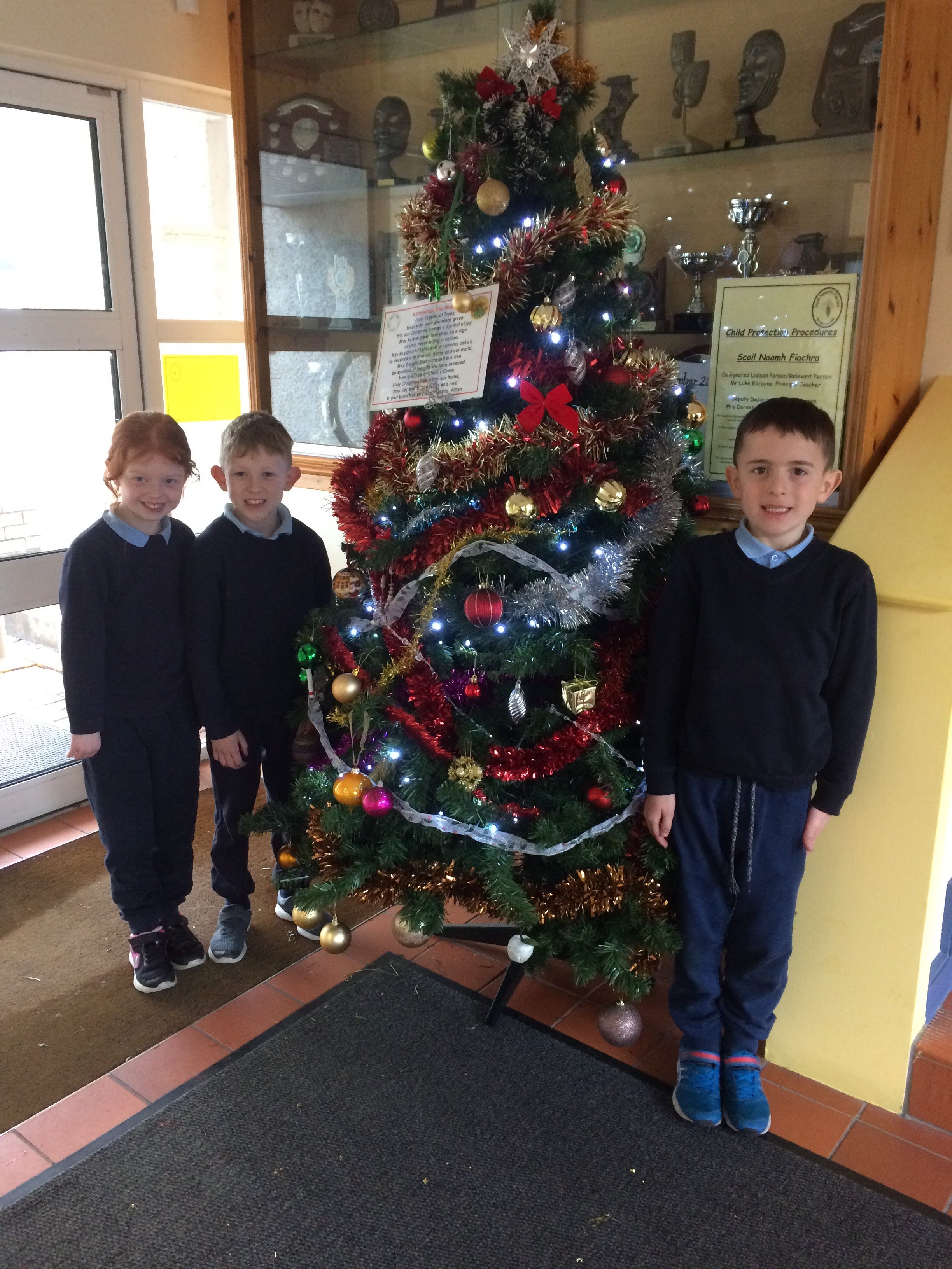 All members of the school community are enjoying the season of Advent and busily preparing for Christmas. Pictured are some 2nd class pupils with our Christmas Tree in the school lobby. Our crib is situated in the window of our court yard. It reminds us all of the joyous story of the First Christmas.