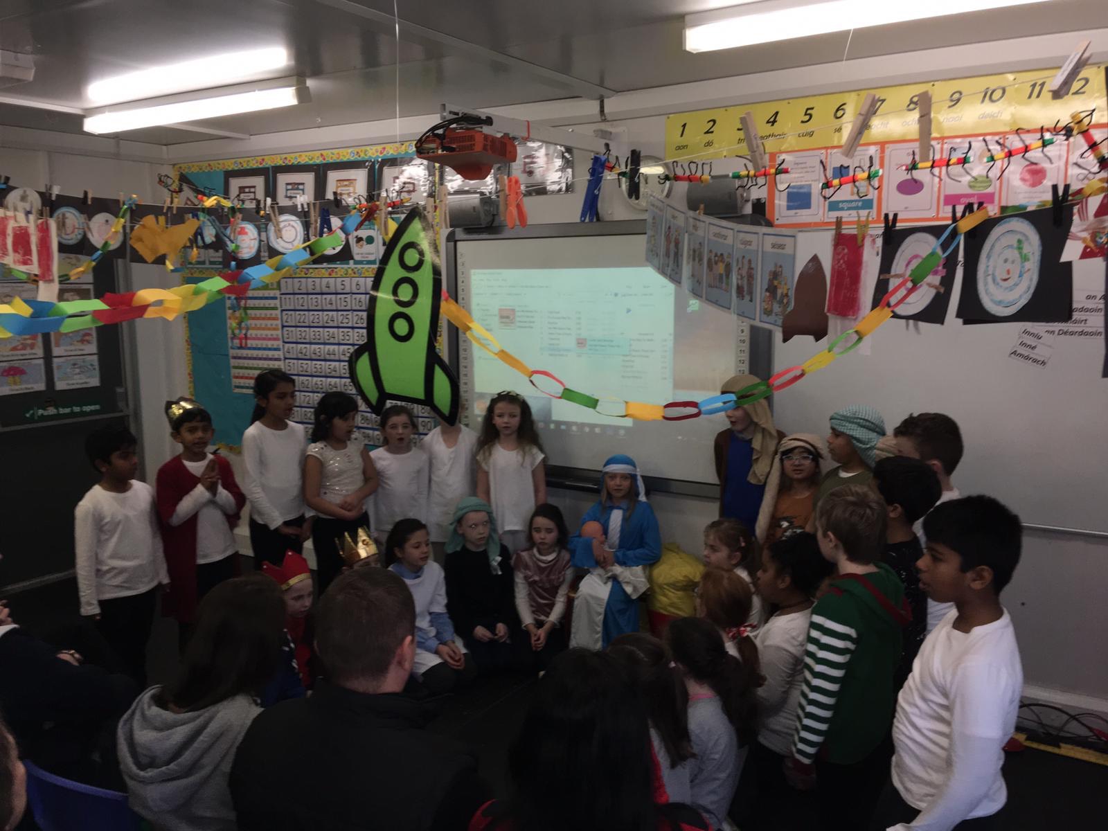 Mr Maguire’s 1st Class boys and girls performed ‘Hosanna Rock’ for their families and the school on Tuesday 18th December. The children had been rehearsing their songs and lines since Halloween, so they were super excited to perform it. The fantastic singing along with the beautiful costumes got everyone into the Christmas Spirit. Well done to all involved and a big thank you to everyone that attended!