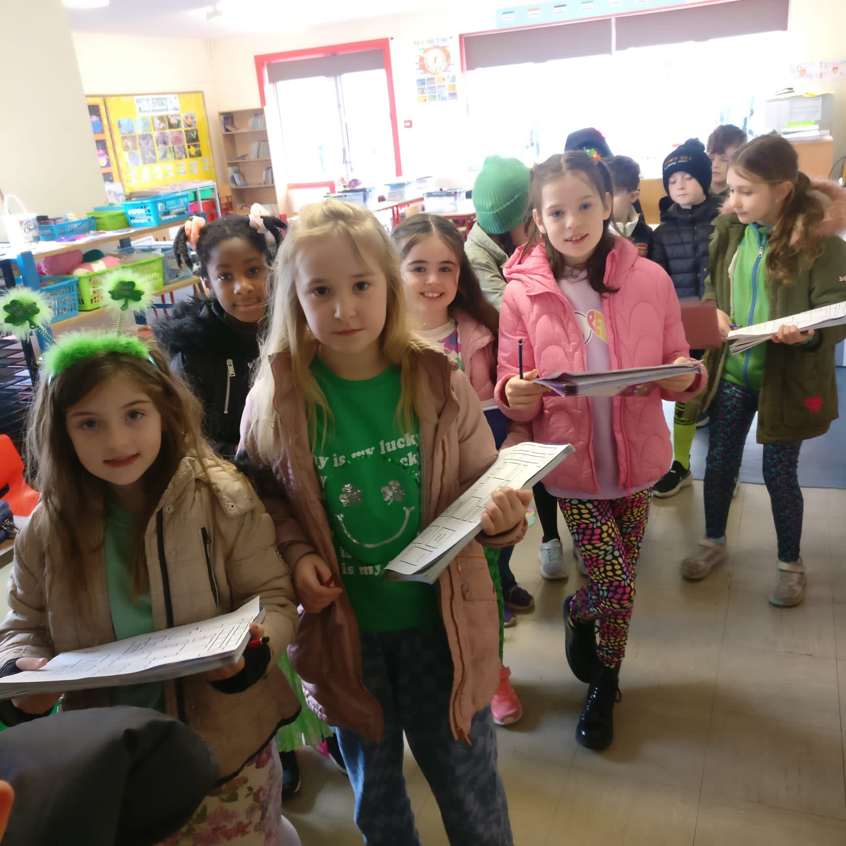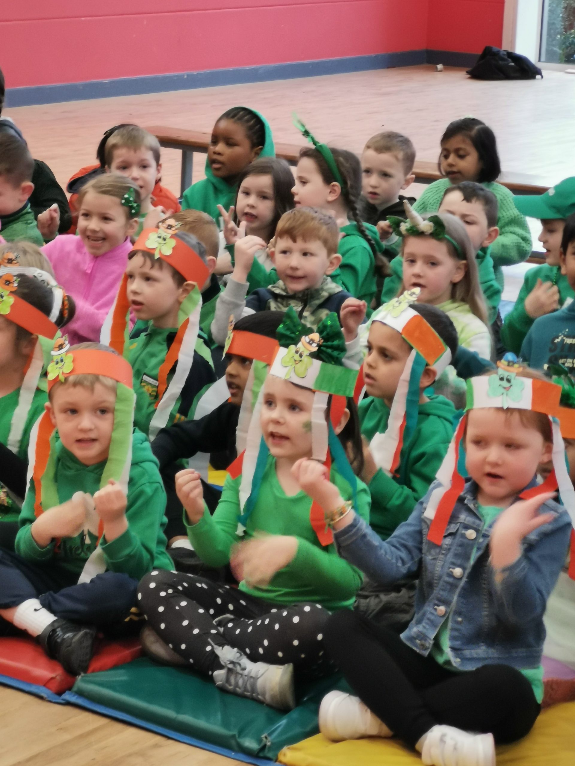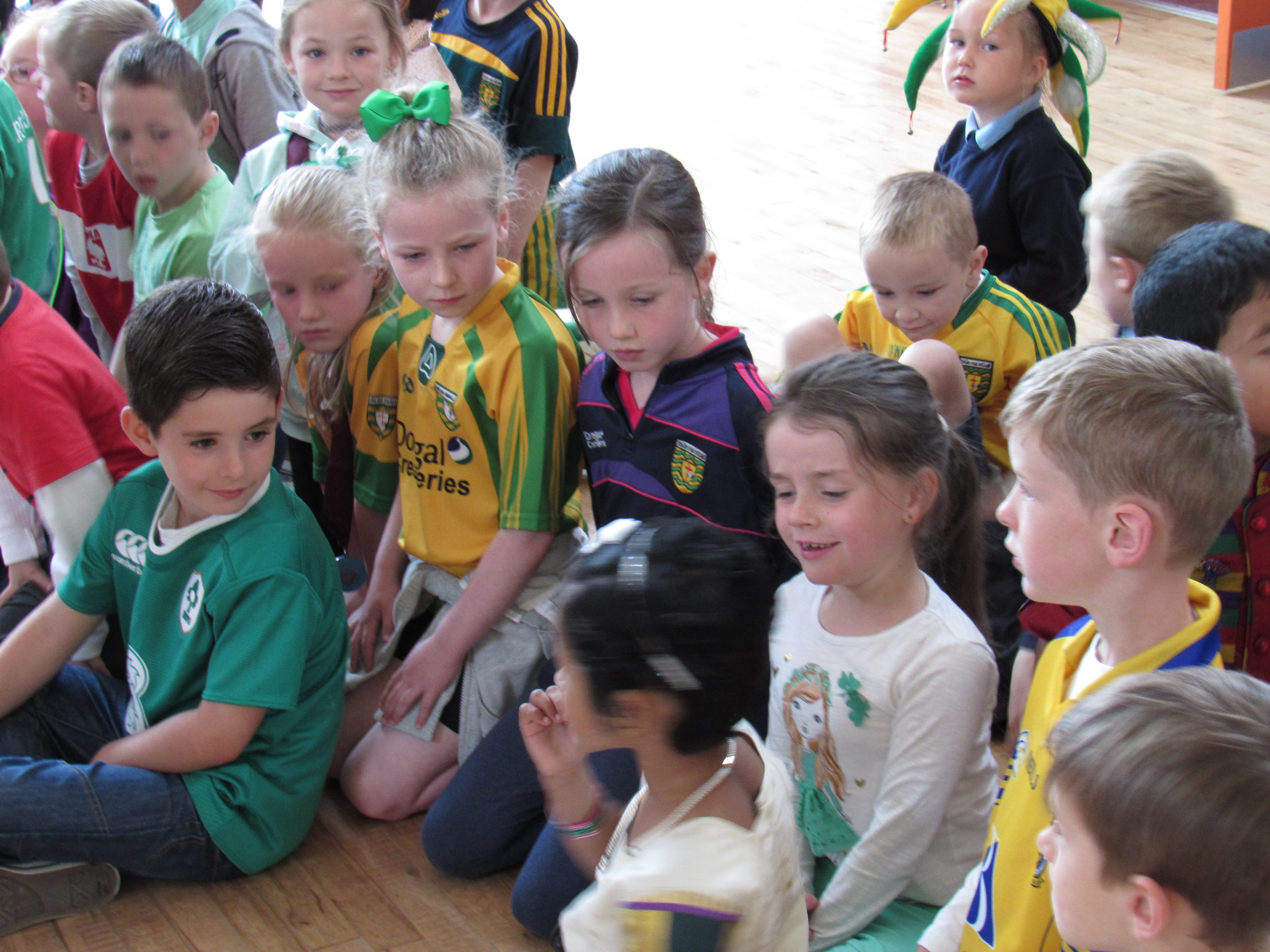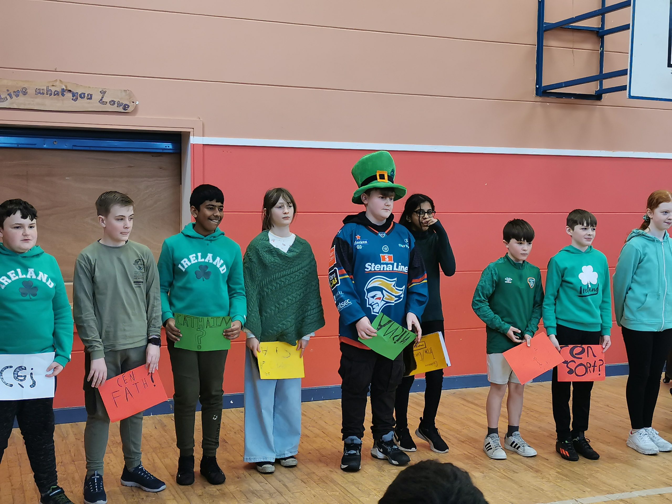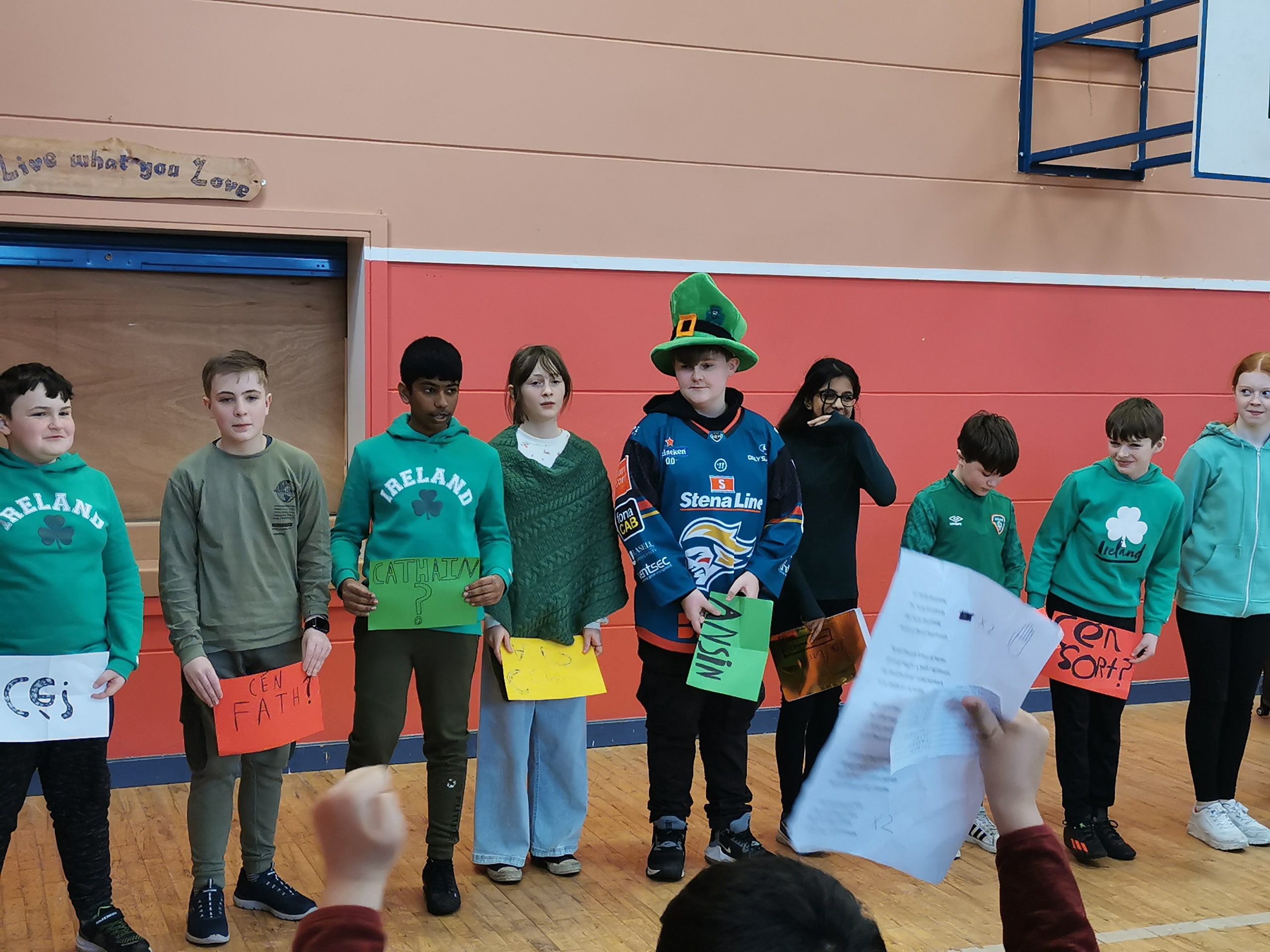 Bhi Lá Gaelach againn sa scoil ar 15ú Márta. Bhí gach duine feistithe in éide glas, bhí ceol, damhsa, amhránaíocht, agus filíocht mar pháirt den Lá Gaelach.