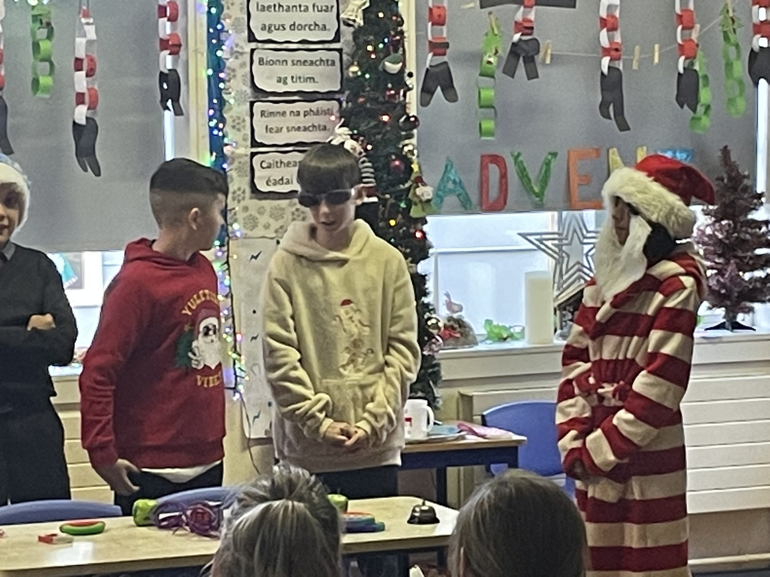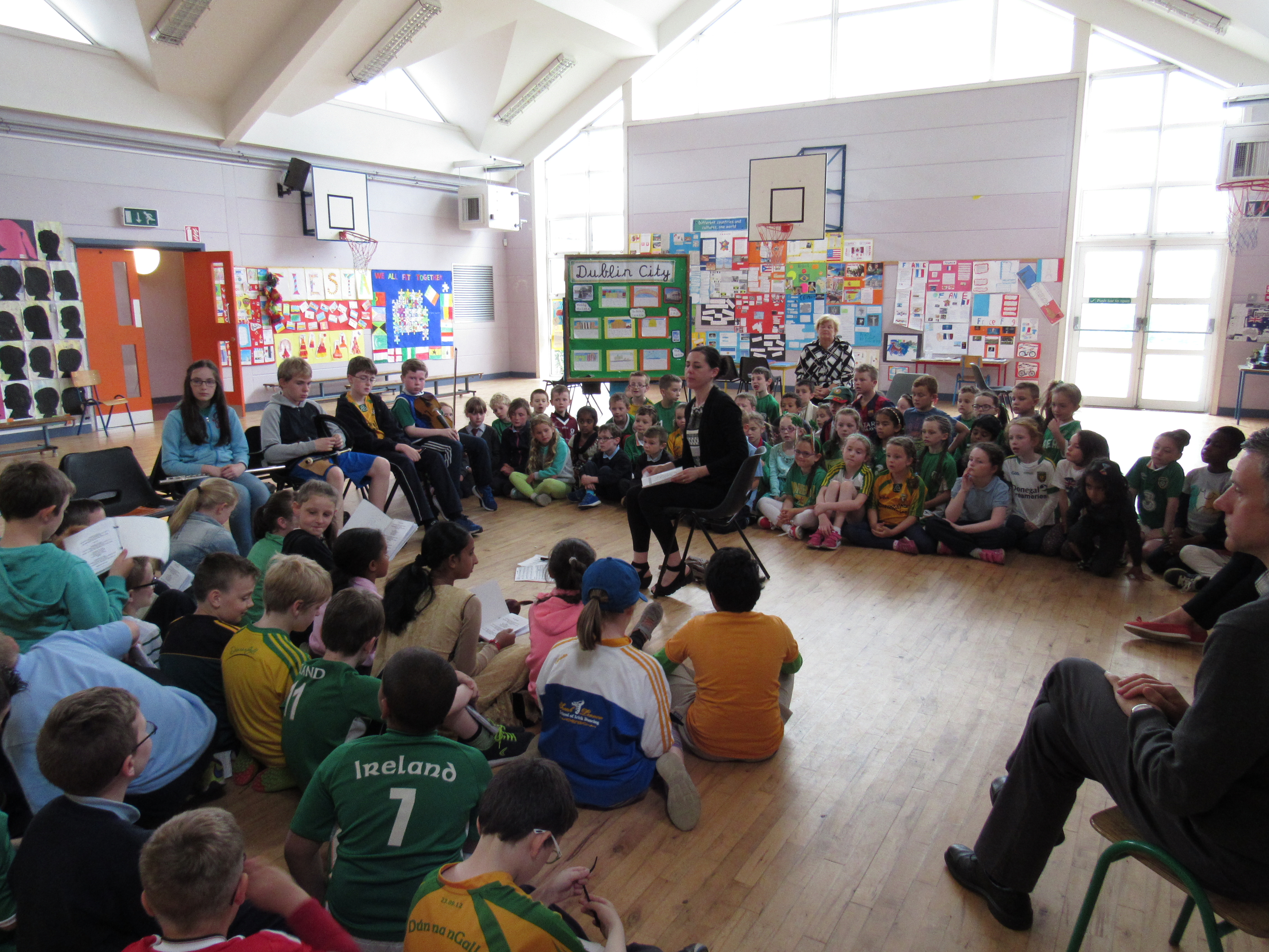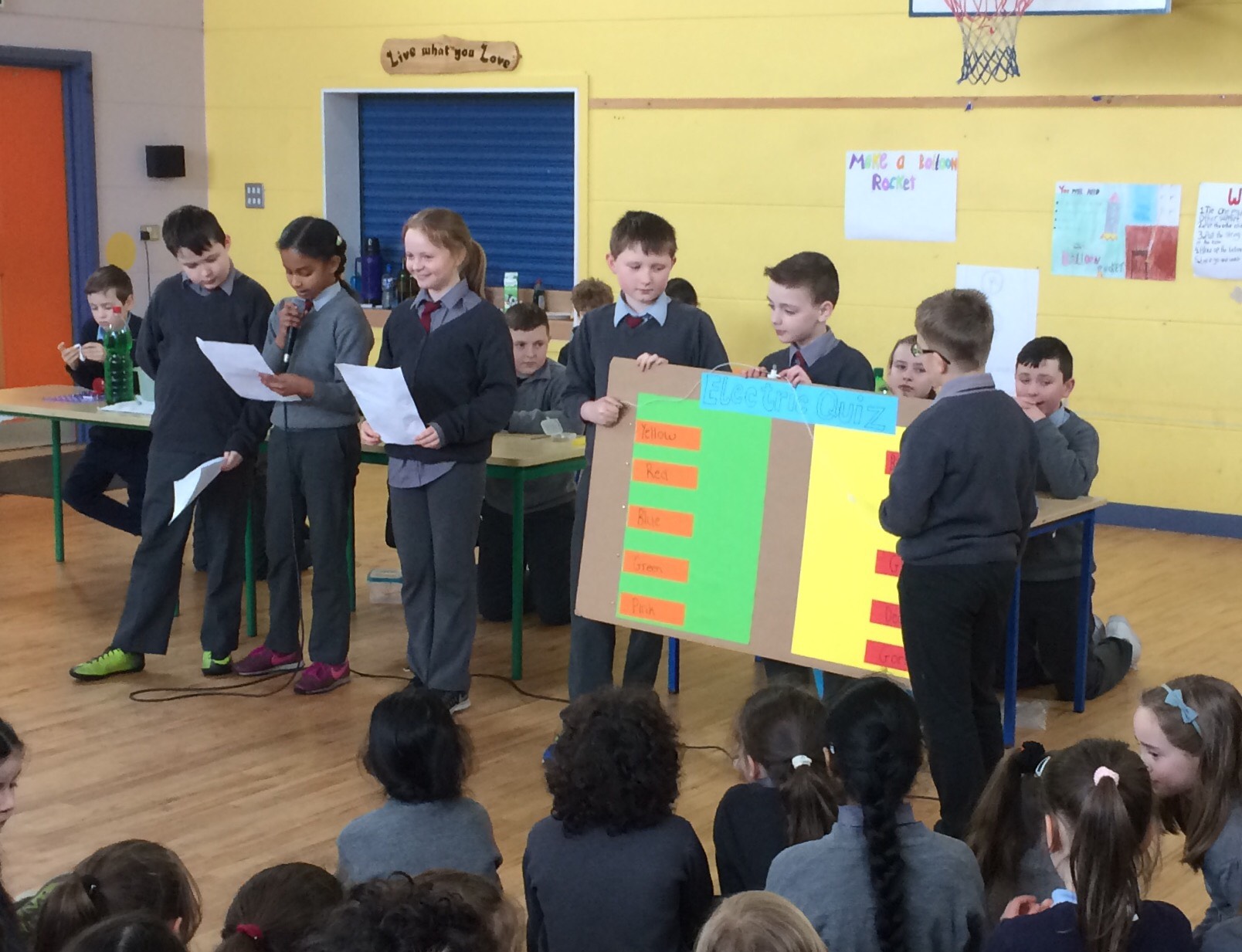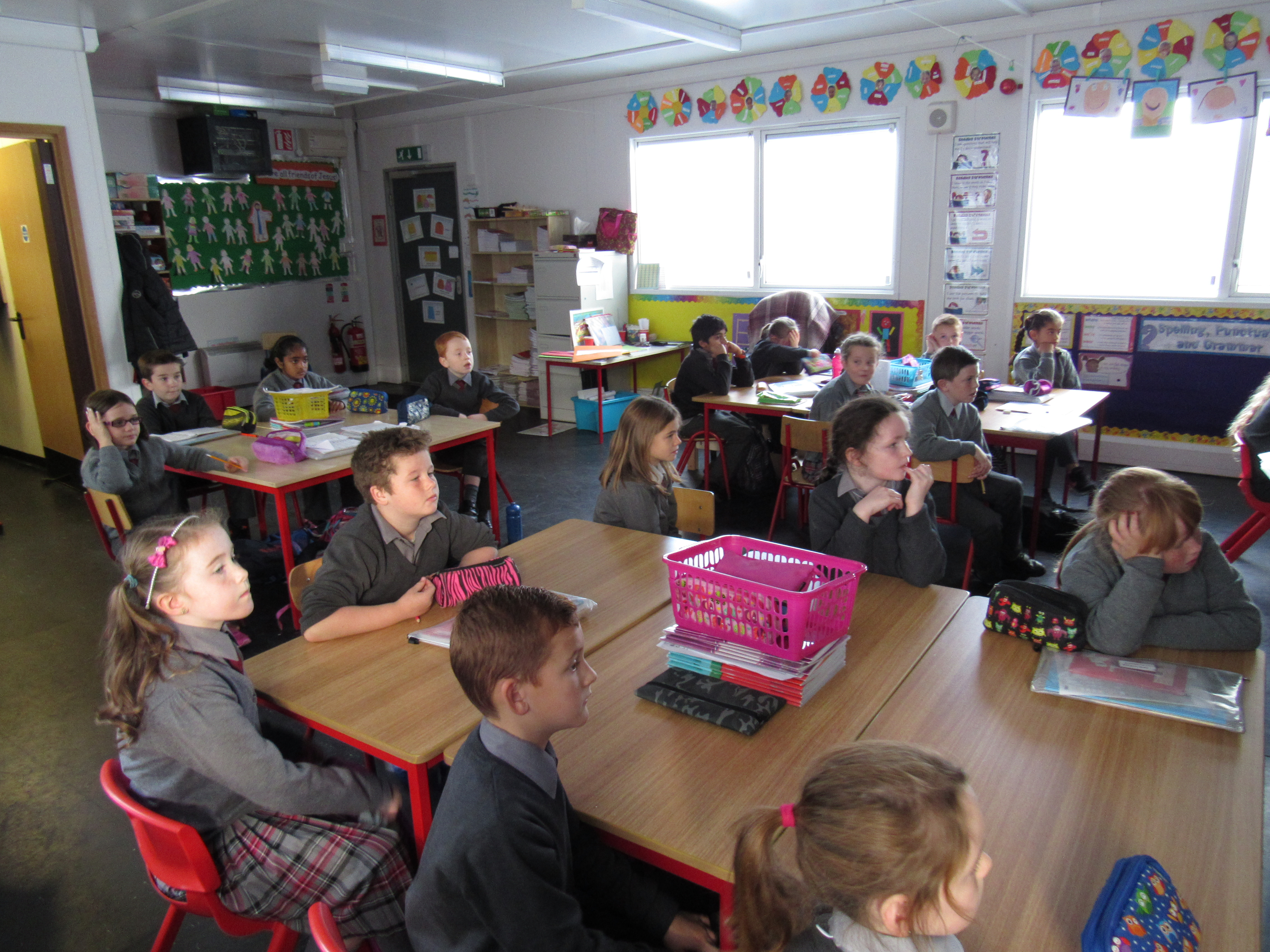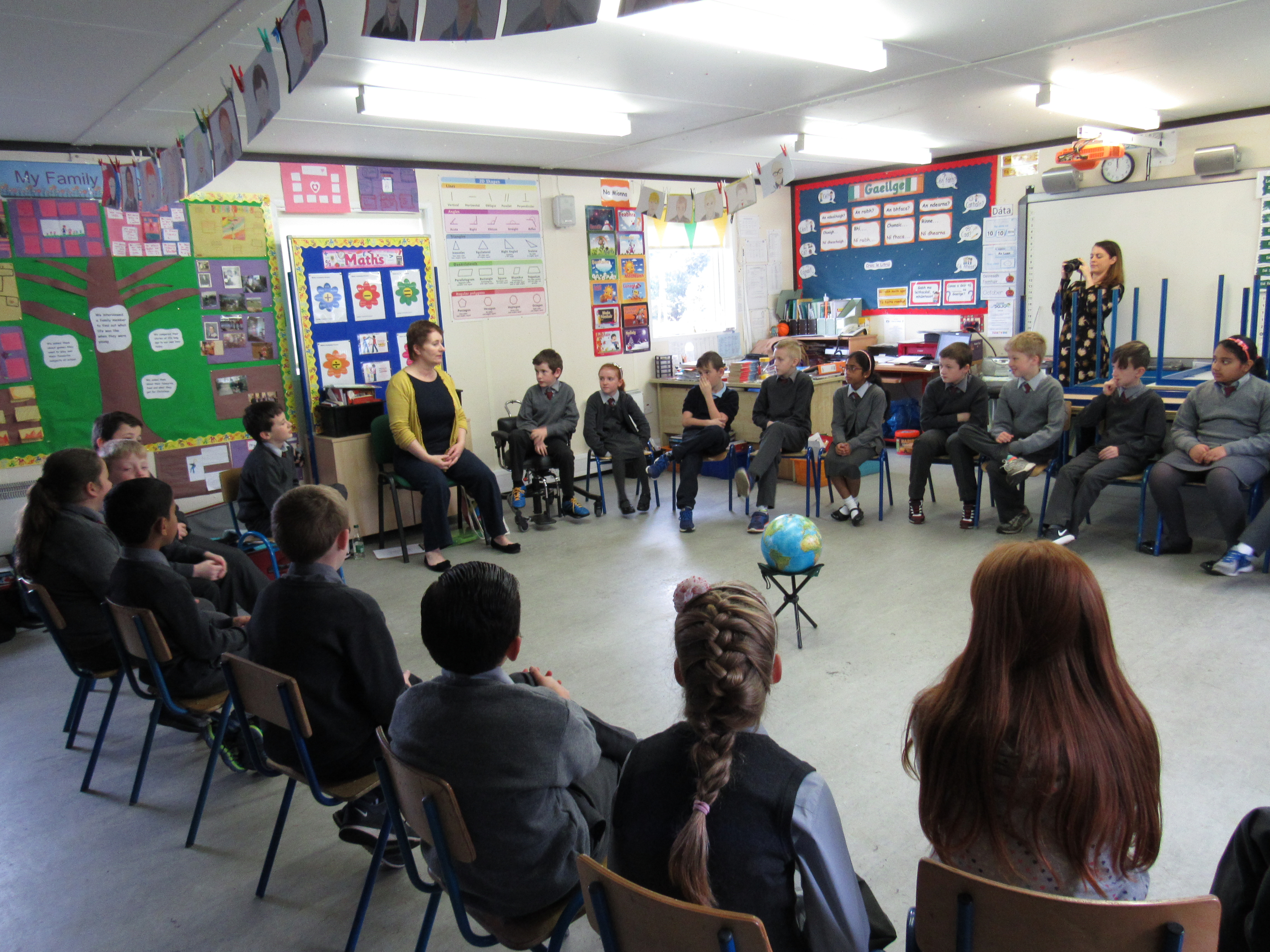 During the week, Seachtain na Gaeilge, older classes joined with younger classes and read Irish books together. Also many classes began to write their own Irish books, Scríobh Leabhar. Pupils also took part in a Toraíocht Taisce (treasure hunt).