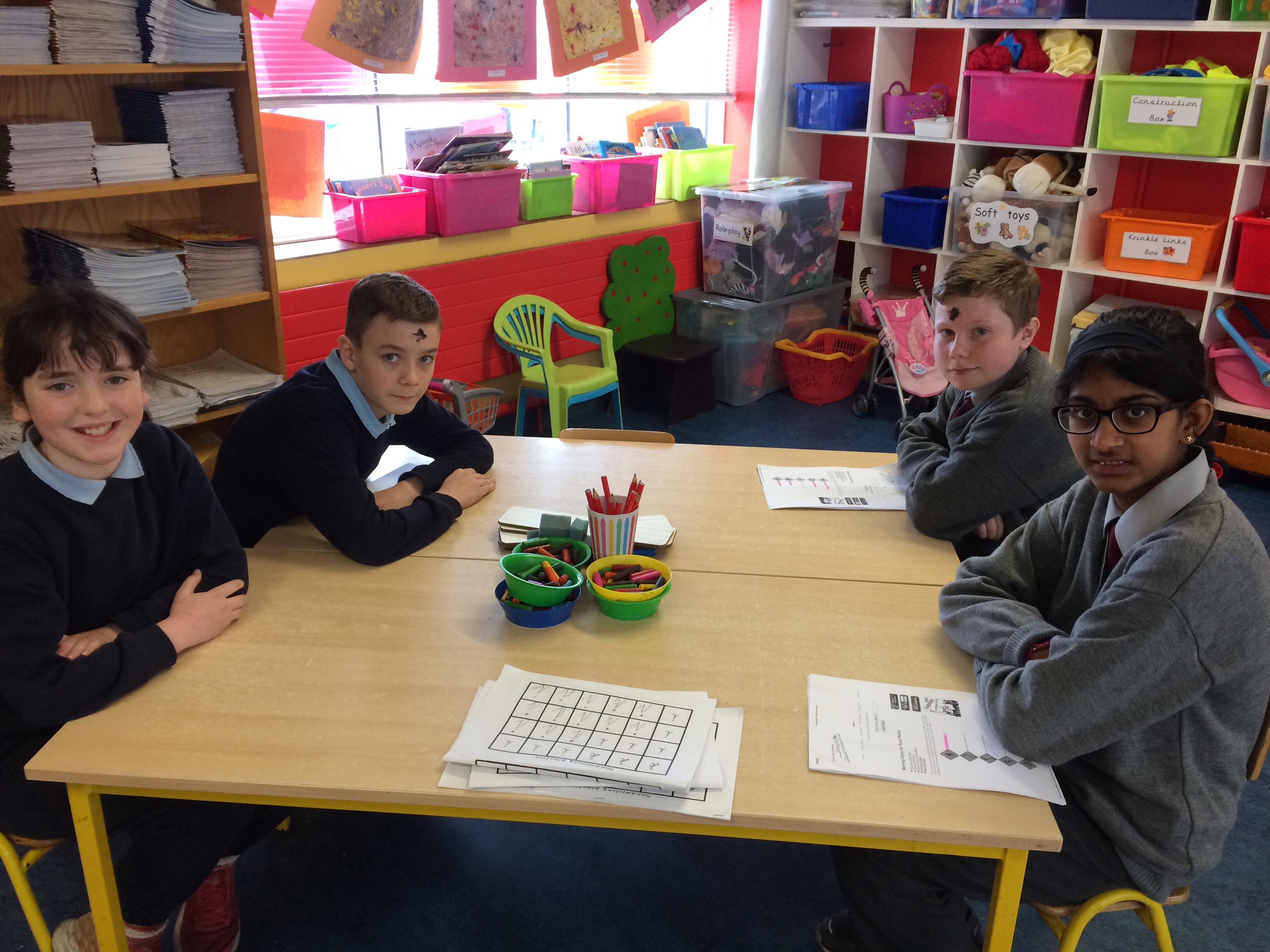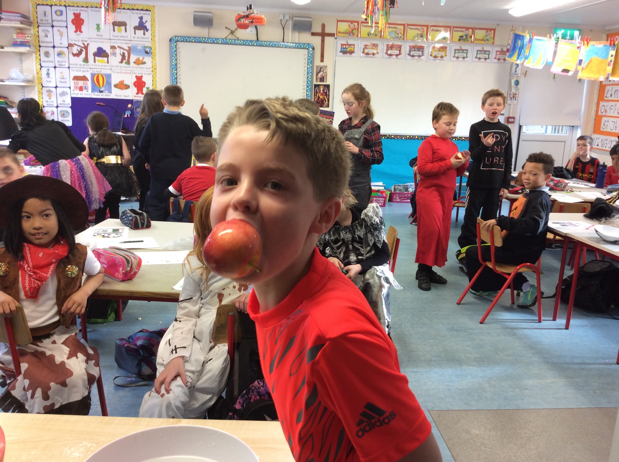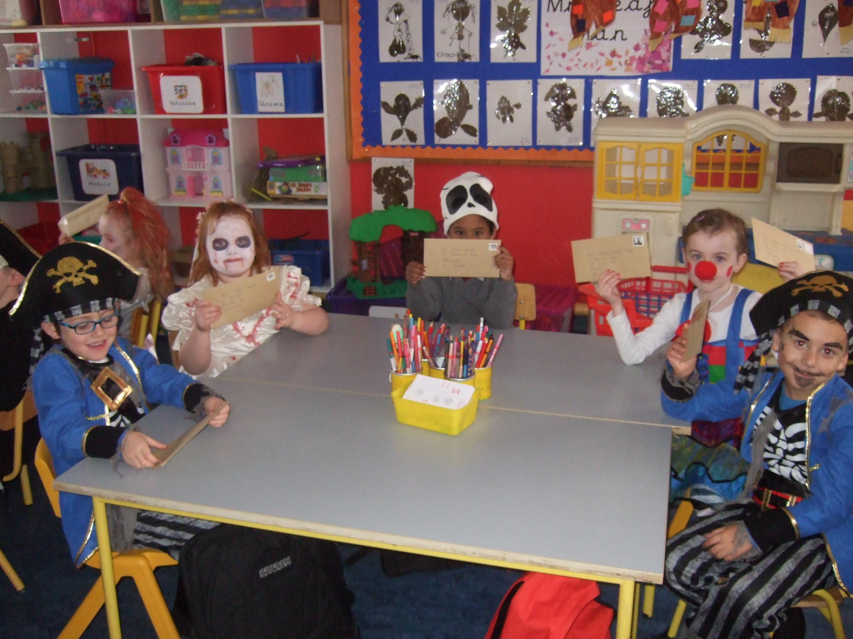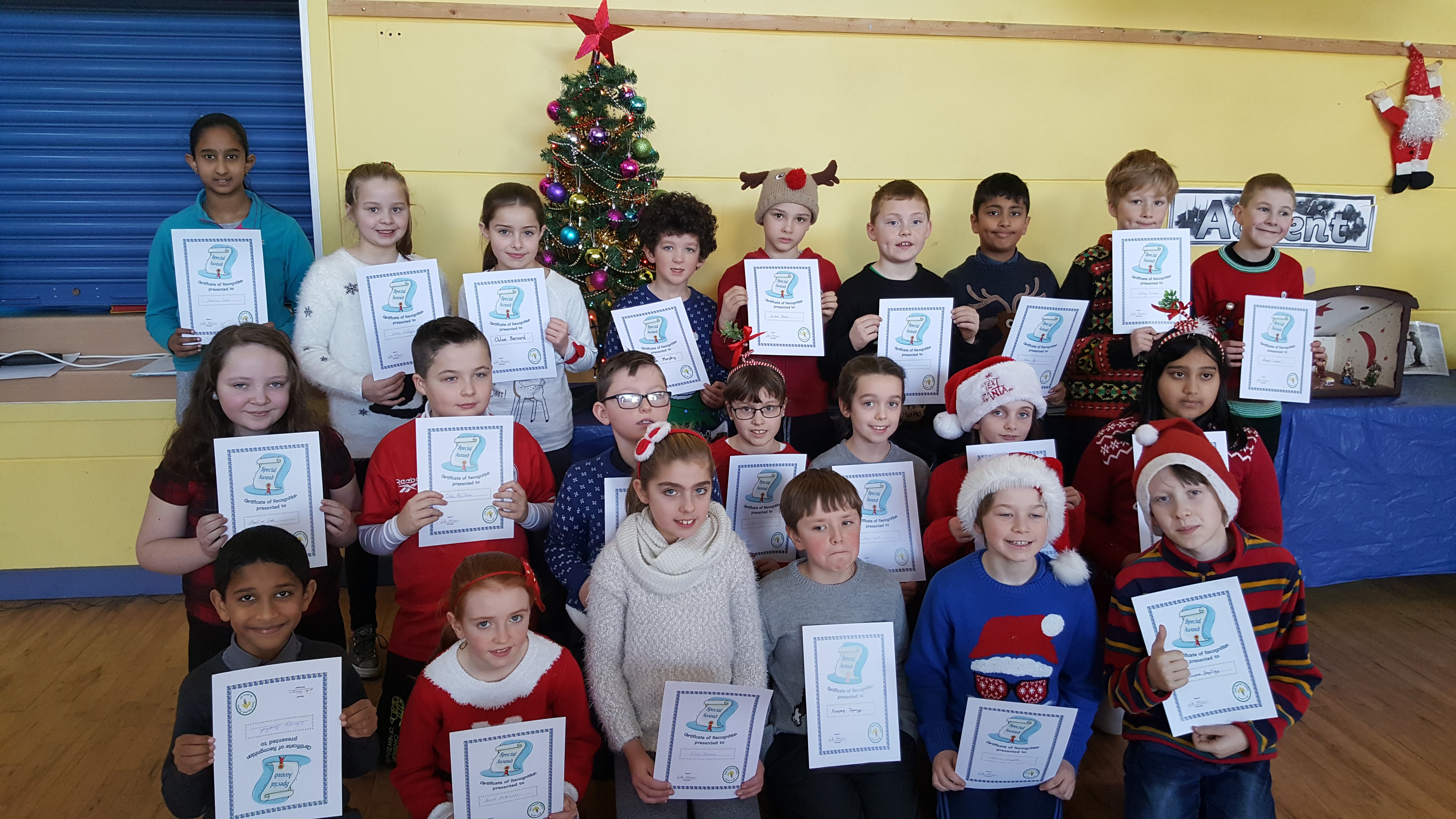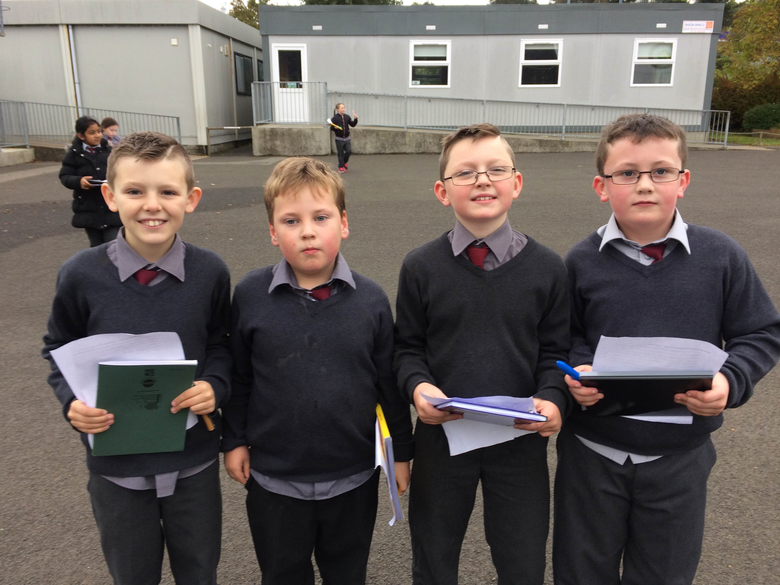 During the week, Seachtain na Gaeilge, older classes joined with younger classes and read Irish books together. Also many classes began to write their own Irish books, Scríobh Leabhar. Pupils also took part in a Toraíocht Taisce (treasure hunt).