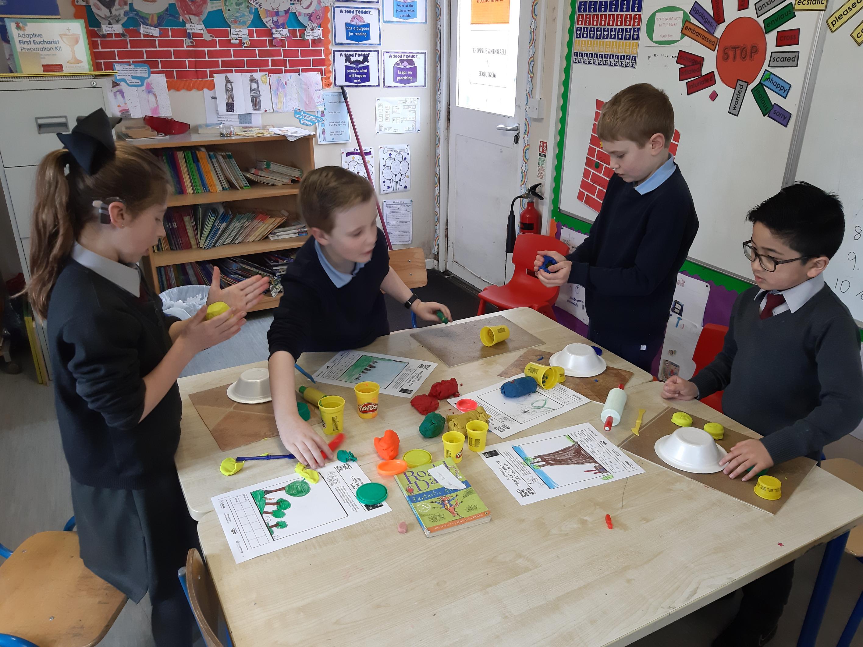 Children made models of the setting of ‘Fantastic Mr Fox’ by Roald Dahl. Then they presented them to their class.