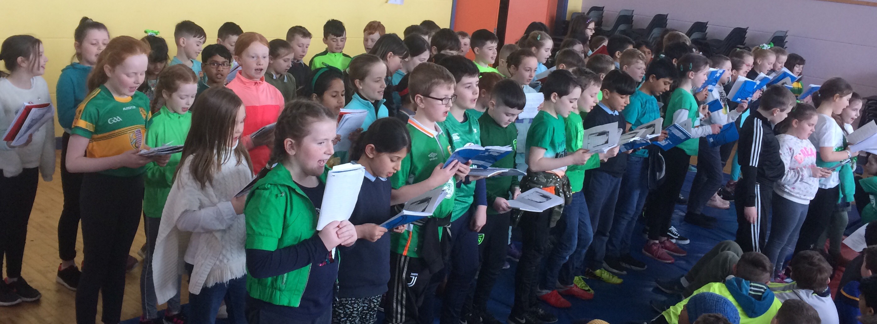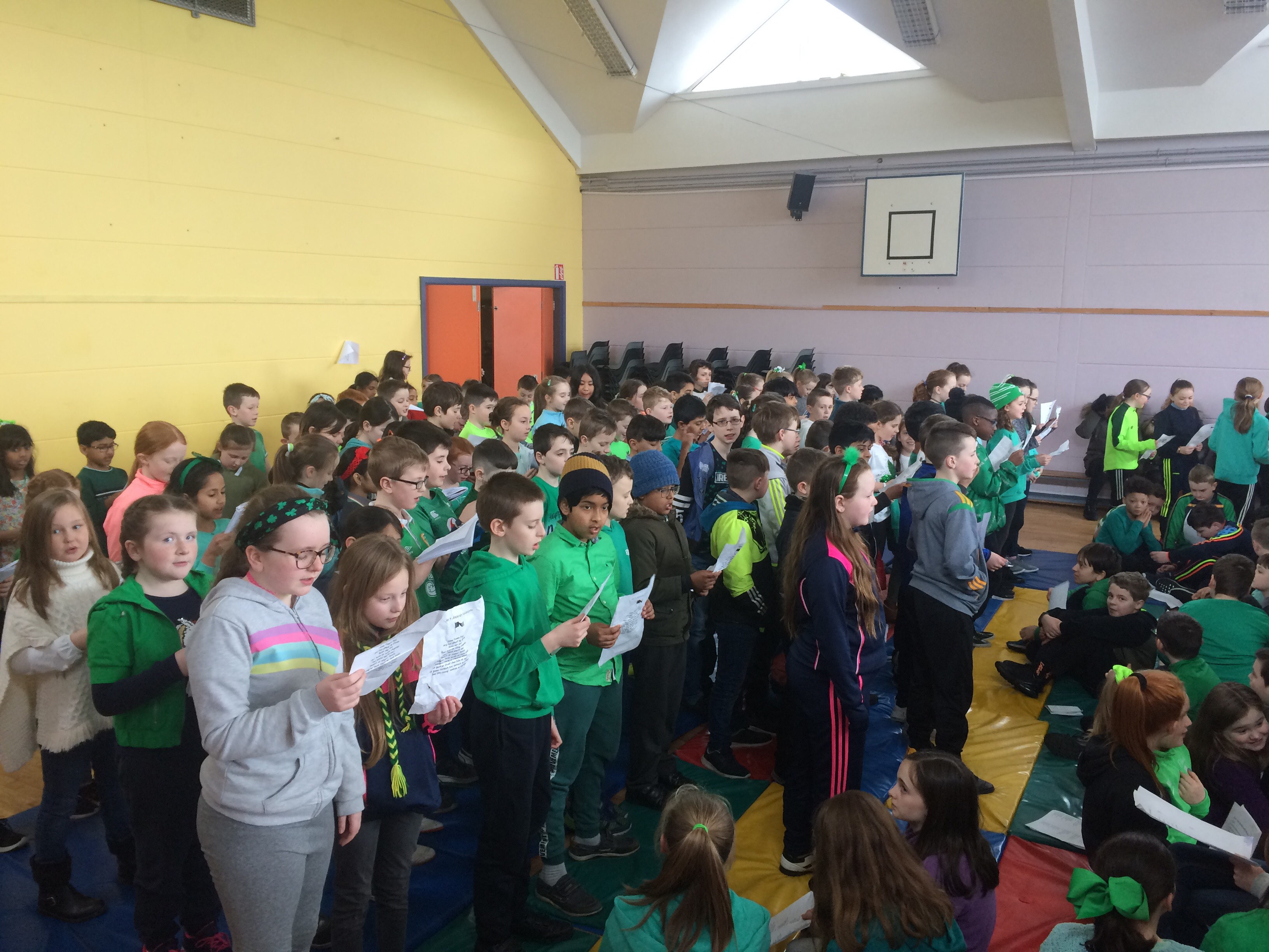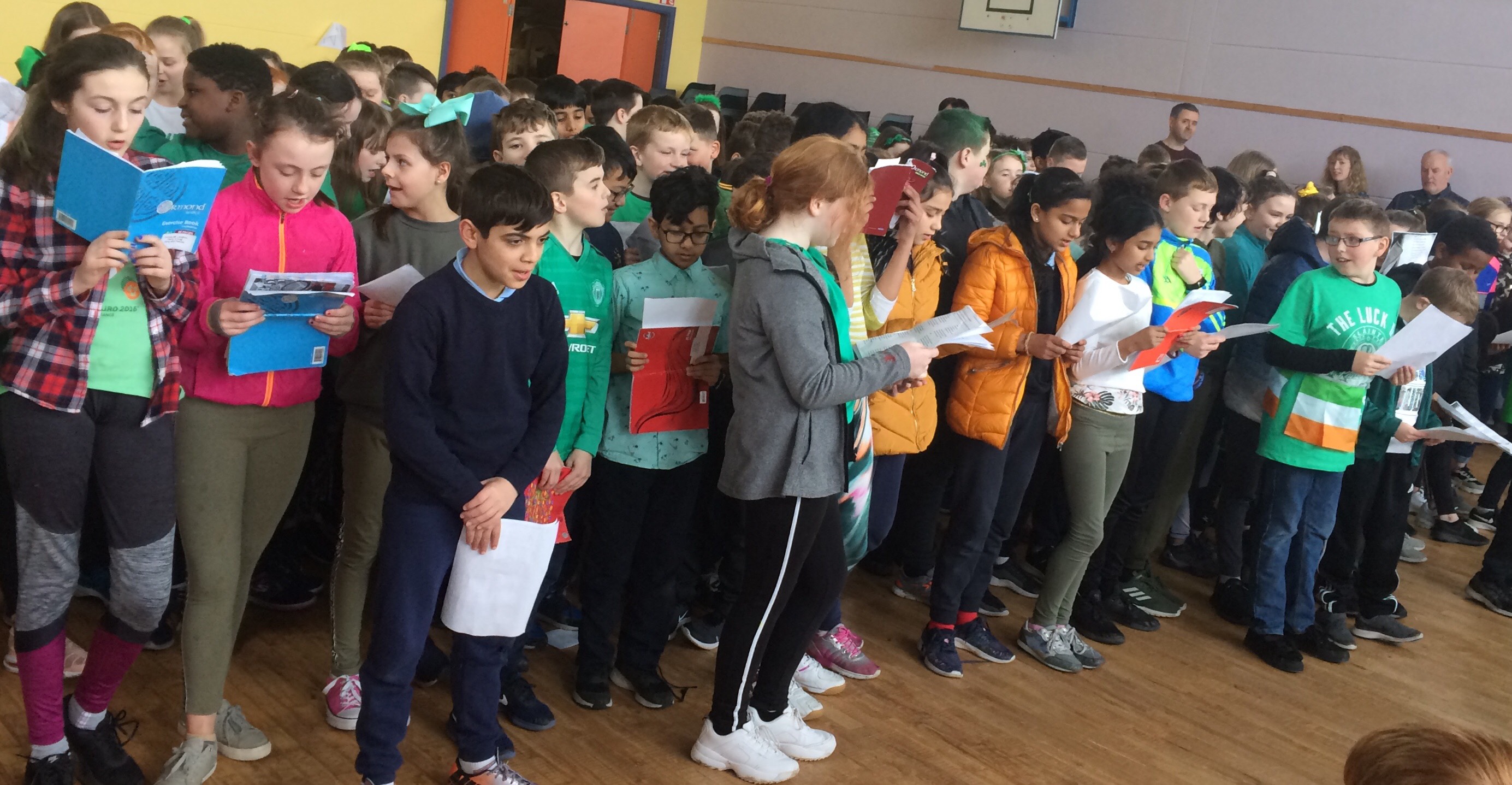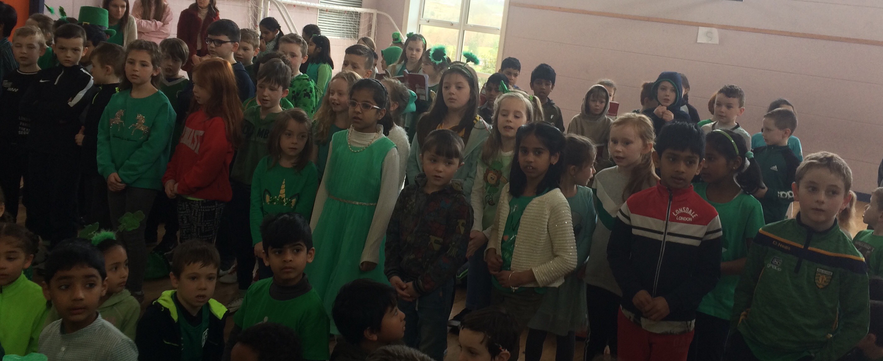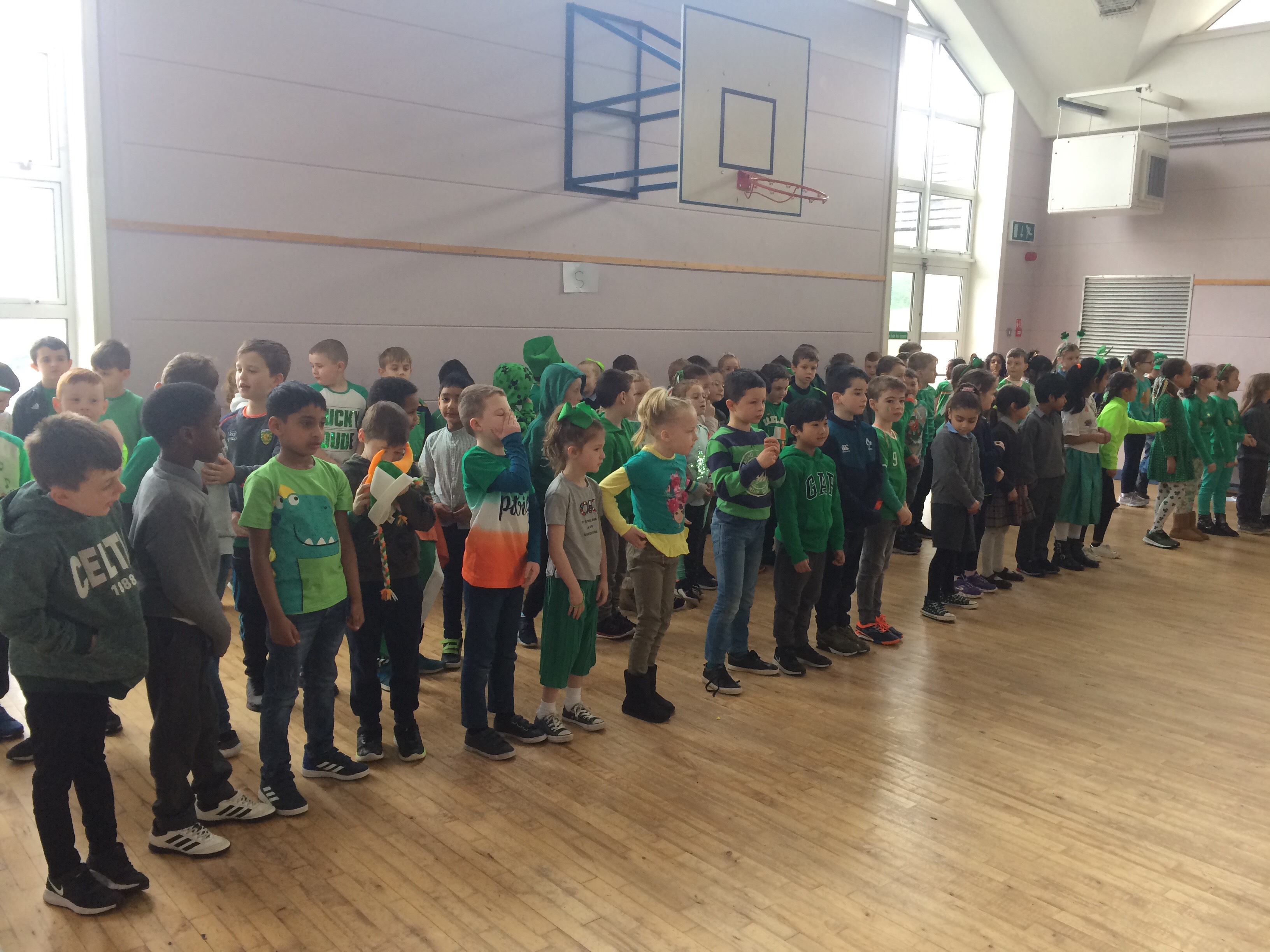 Bhí Lá Gaelach againn i Scoil Naomh Fiachra ar an 13ú Márta. Rinne na páistí iarracht agus ullmhuchan fíor-mhaith don Lá Gaelach. Chaith siad éadach glas agus baineadh usaid as an Ghaeilge. Bhí cur i láthair mór againn sa halla. Chan na páistí amhráin as Gaeilge, d’aithris siad dánta agus bhi an Haka againn freisin. Féach ar na grianghriafanna álainn. Bhain gach duine taitneamh as an Lá Gaelach.