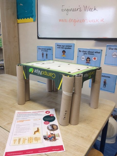 Mr Kenny’s 4th Class students were very busy this week with ‘Engineers Week’. Our challenge was to design and build a cardboard chair with no glue or tape or anything. This proved a very difficult challenge, but all the students brainstormed together and came up with amazing models! Well done to all involved.