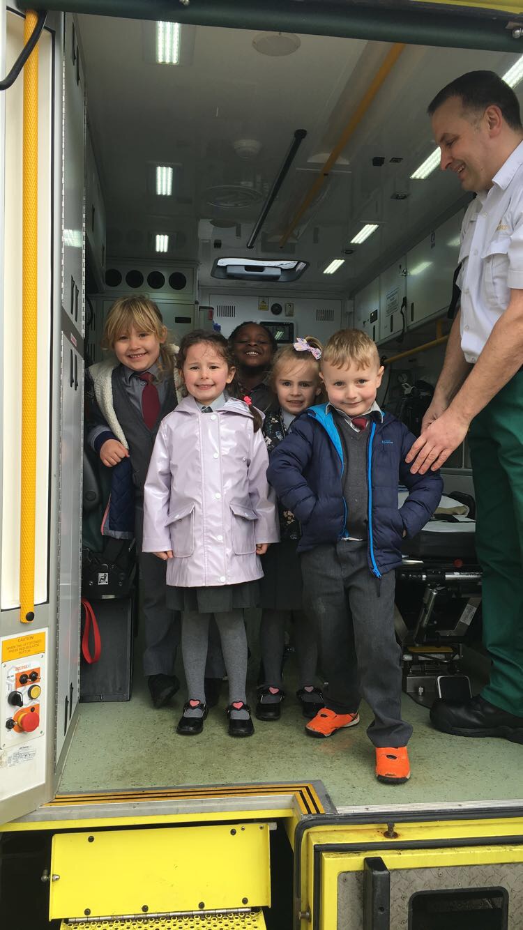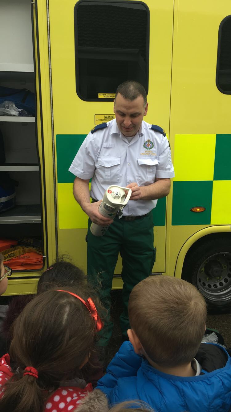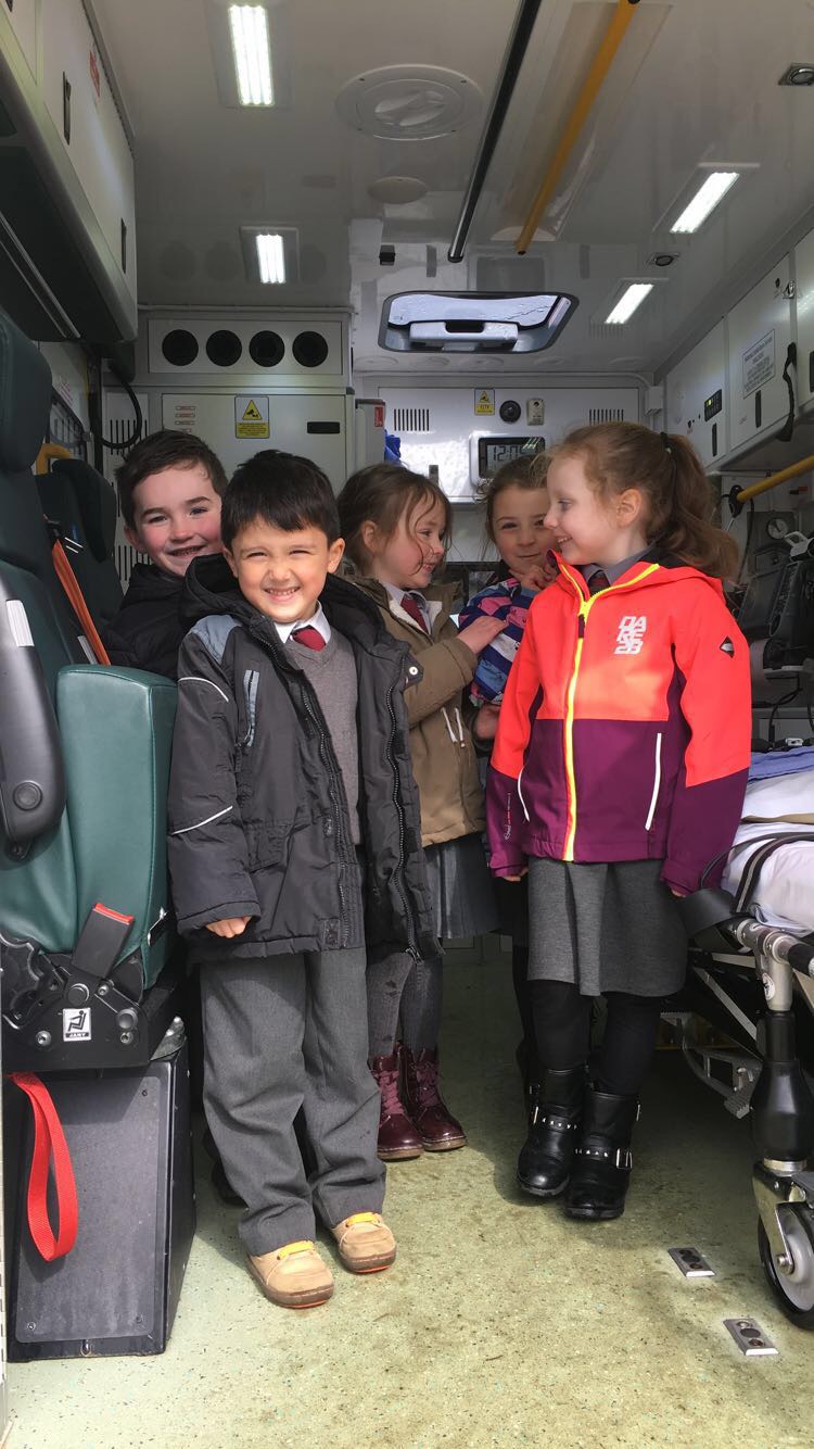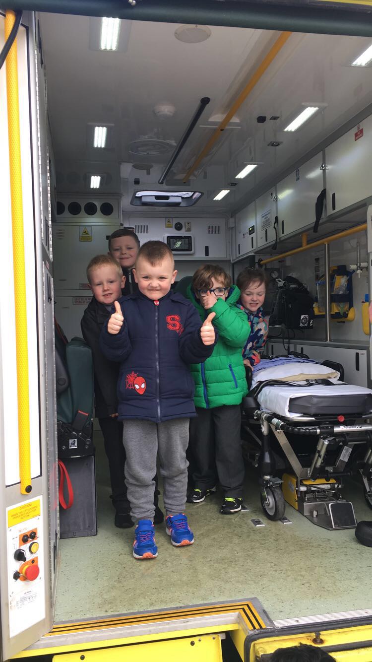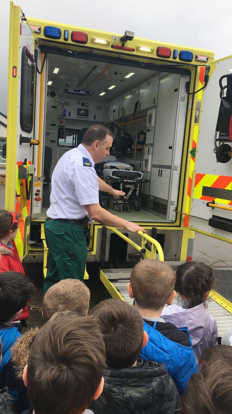 Ms McGarvey’s Junior Infants had a visit from the local ambulance service as part of their SESE lesson on ‘People Who Help Us’, The children enjoyed learning all about the different equipment used by the paramedics and seeing a real life ambulance.
