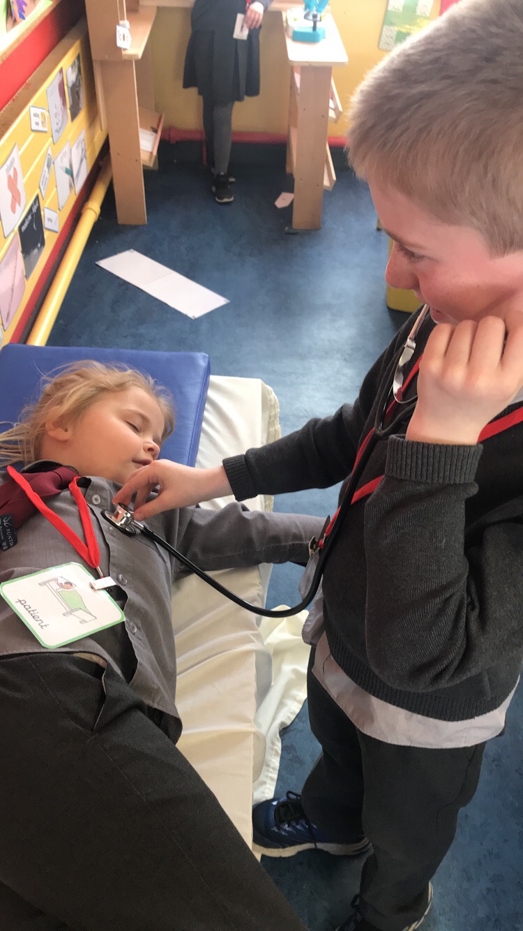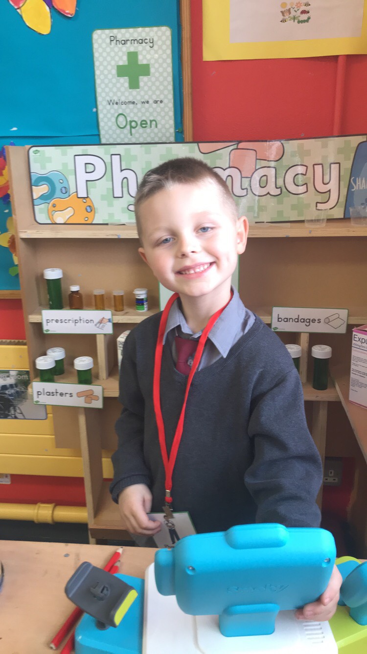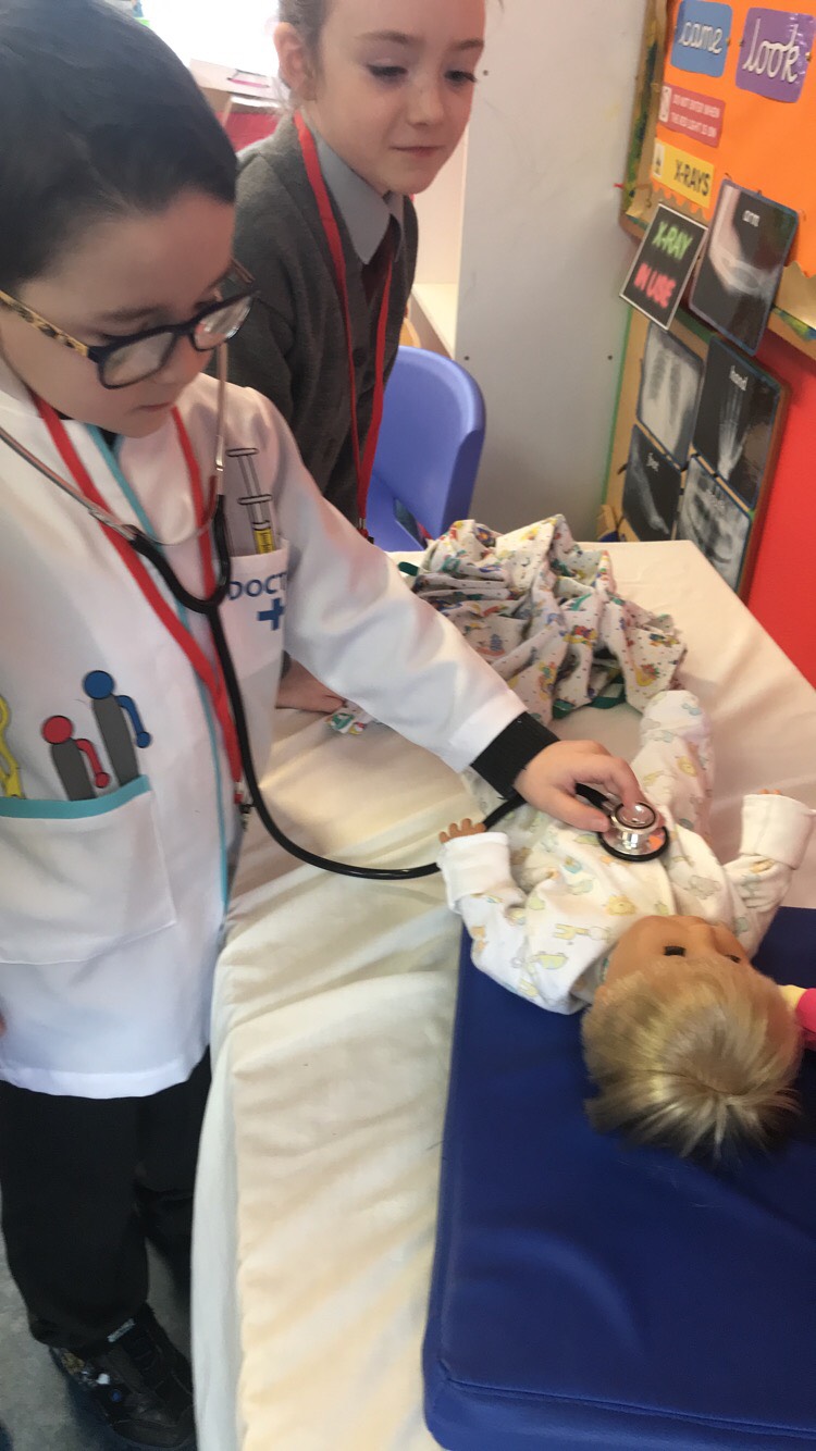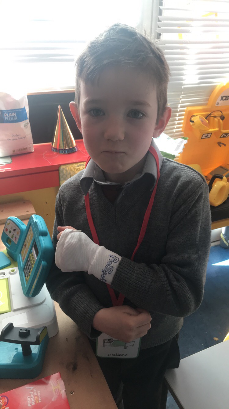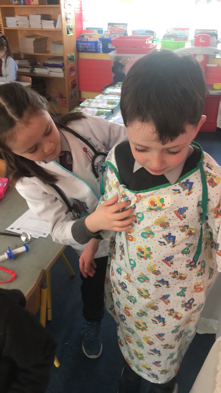 Ms McGroarty’s Senior Infants have been learning about ‘People Who Help Us’ in Aistear. The doctors and nurses helped make the patients better in the surgery before they went to the Pharmacy to collect their prescriptions. They made x-rays of their hands at the Art station and built Garda stations, hospitals and fire engines at the construction station.