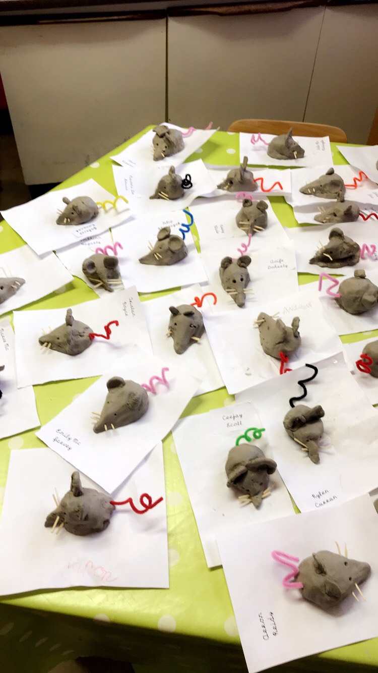 Pictured below are Ms McGroarty’s Senior Infants making cute little mice from clay.