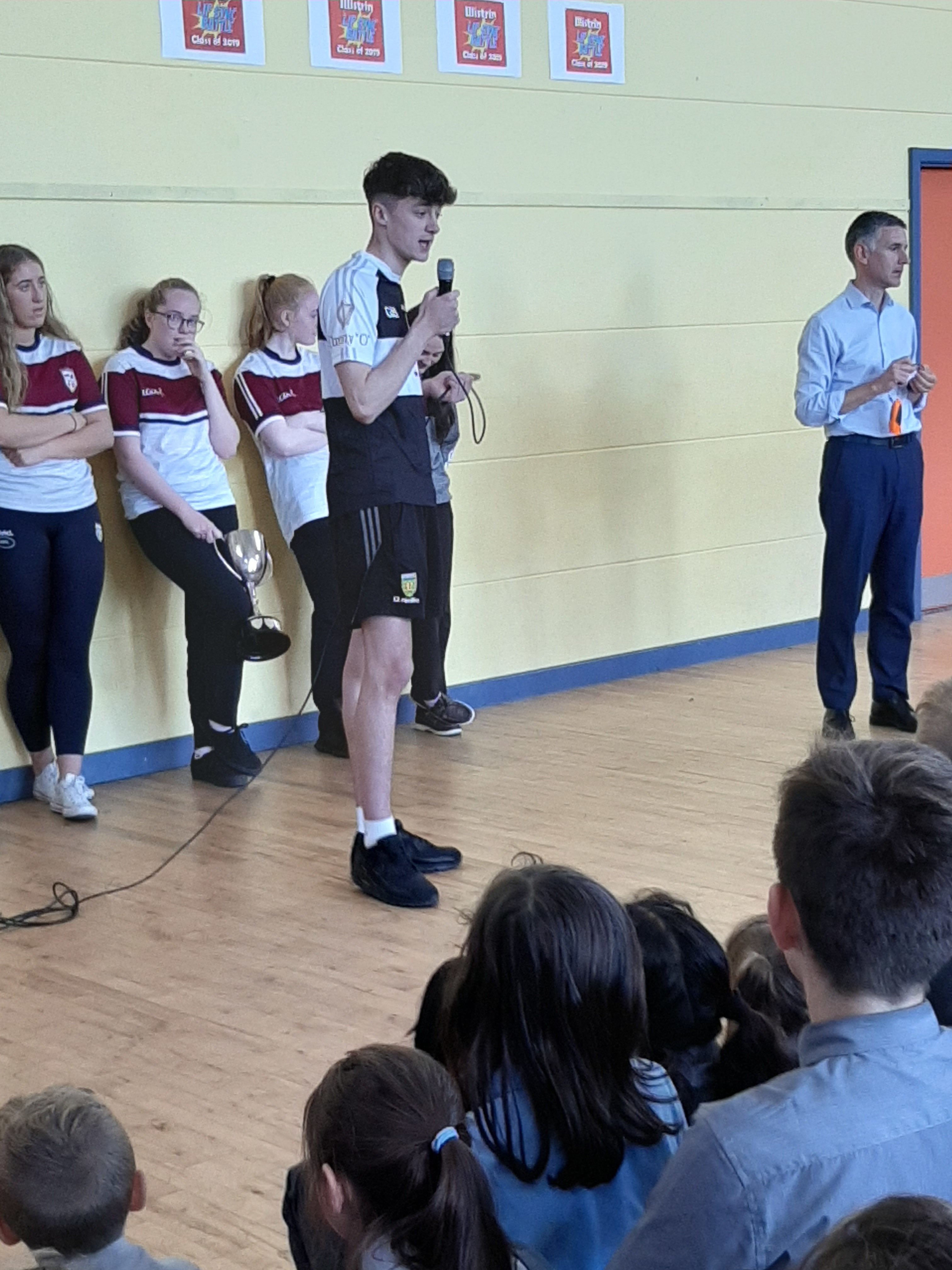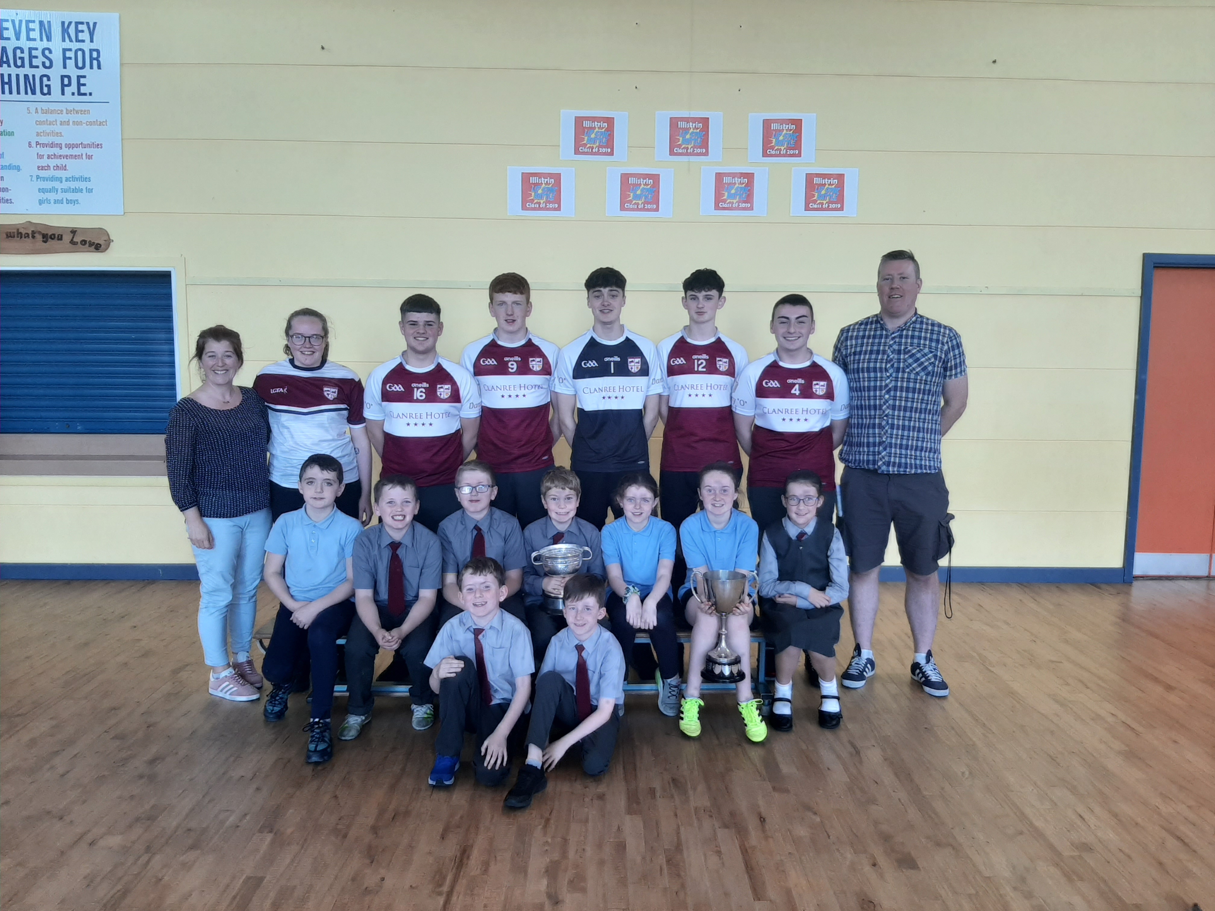 Termon Minors & the Senior girls who won the County Final visit Scoil Naomh Fiachra